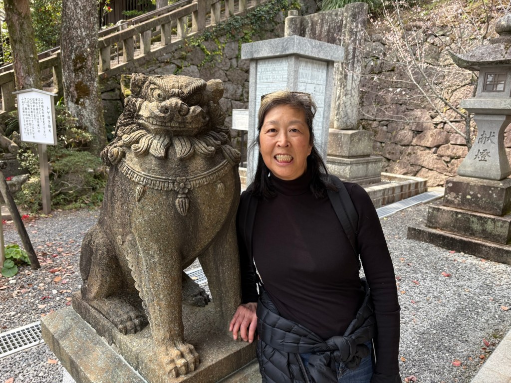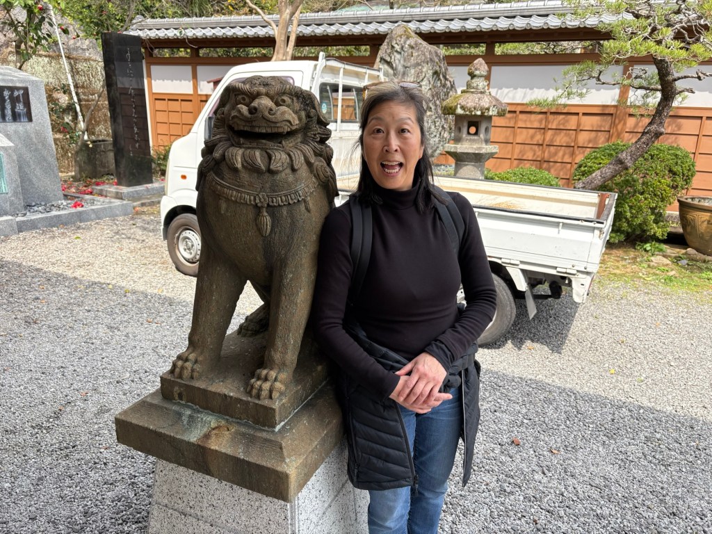 We popped into a 2nd floor restaurant for lunch and had some great tonkatsu. It hasn’t been hard to find good food so far. Then we started climbing steps to Suwa shrine, stopping at some Shishi along the way.