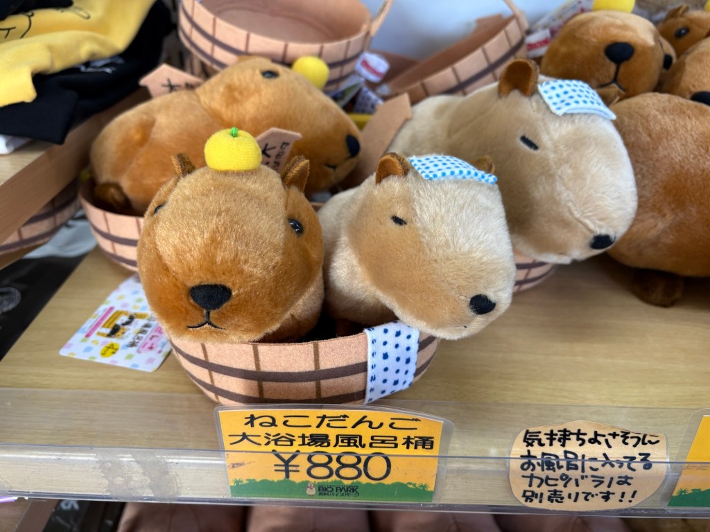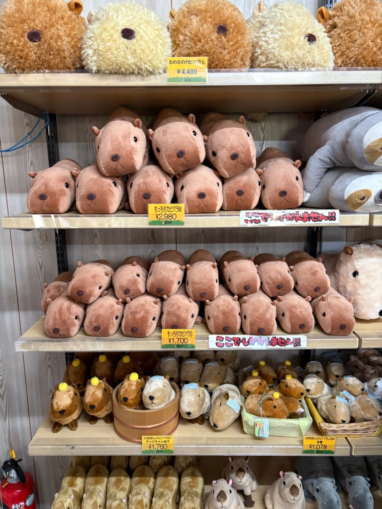 They really lean into the capybaras, with capybara shaped karaage and plushies. They didn’t have the capy onsen running, I think winter is over and all the giant rodents get to swim in now is a cold pond. Capybaras are about as soft as a pig.