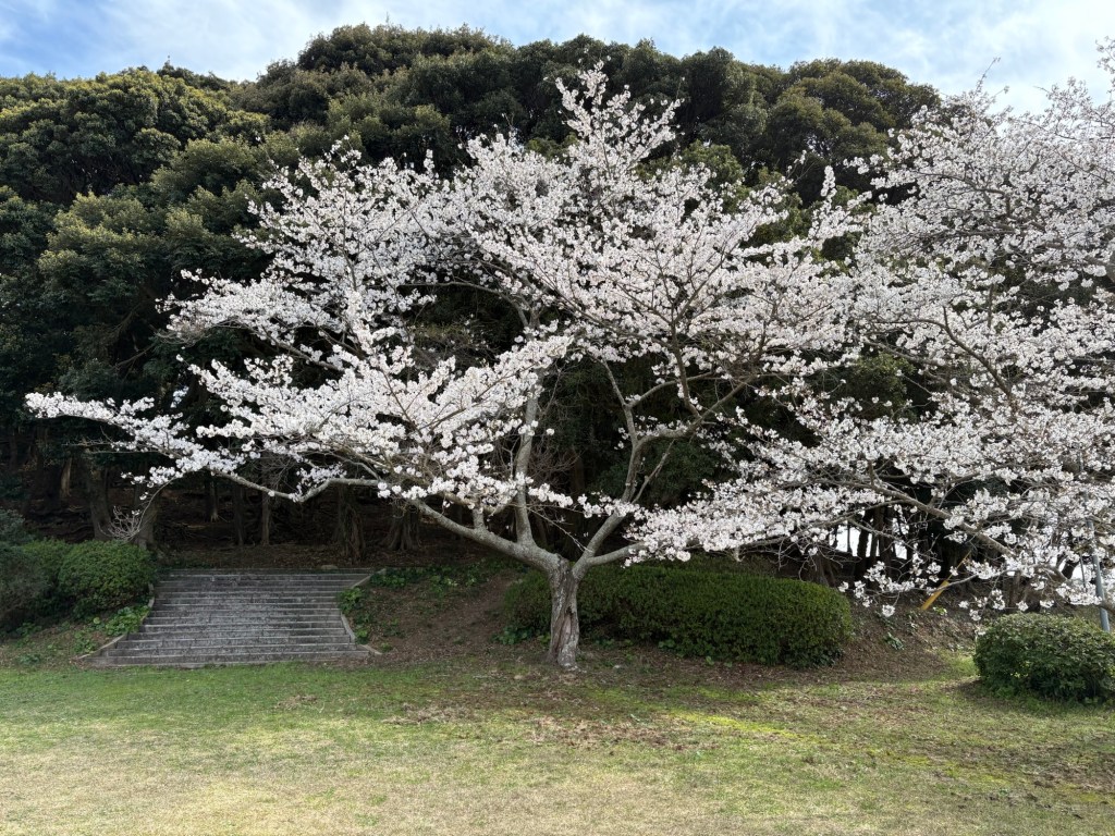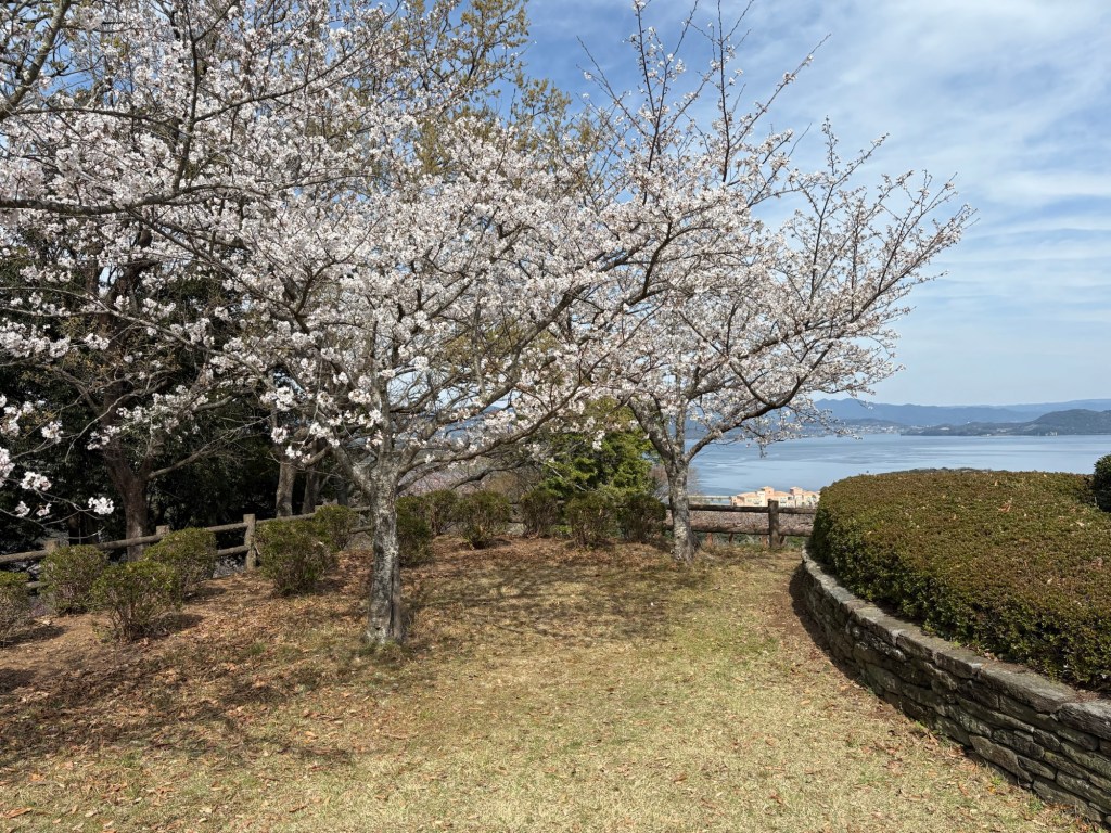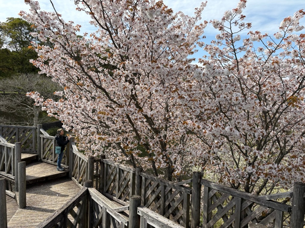 After the Bio Park I started to feel more comfortable driving. We drove north up to the tip of the peninsula where a park overlooks the narrow passage of Ōmura bay to the ocean. The tidal current was impressive, it must be challenging to navigate a boat through. Cherry blossoms were in abundance.