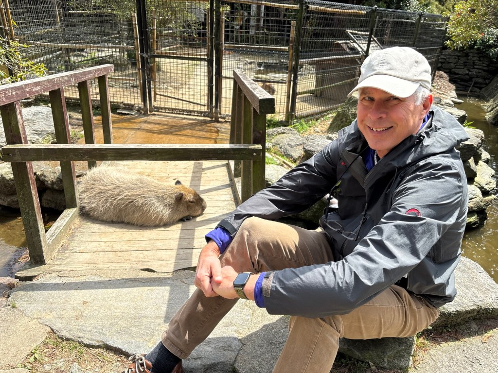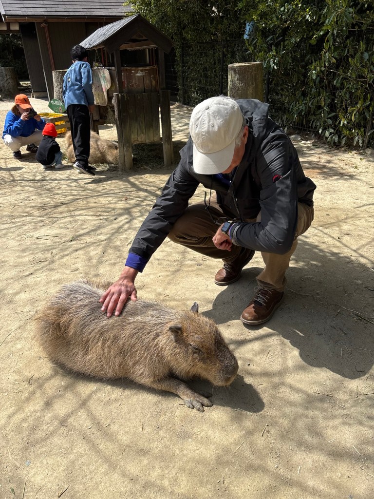 Today we moved on from Nagasaki. My initial plan was to visit the Kyushu Ceramics Museum, but like any good museum it’s Closed Mondays. So we zagged and went to the Nagasaki Bio Park out on the Nishisonogi Peninsula. This command decision was made on very thin information, namely a brief video we saw years ago of capybaras sitting in their own onsen. Sometimes you just need to pull on a thread.