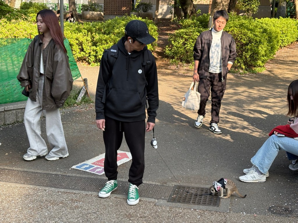 The cherry blossoms were a little past peak in Ueno park but it was still good for people watching. There was a guy out walking his meerkat. I wonder what a meerkat is like as a pet in a small Tokyo apartment.