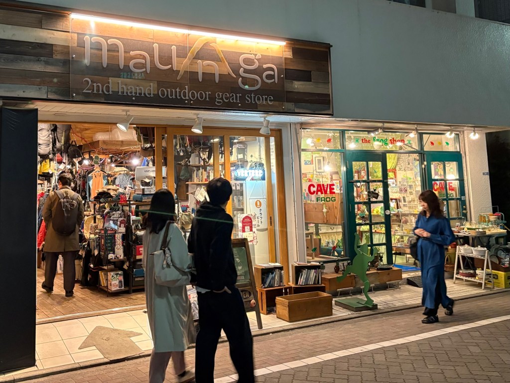By the way, the walking district north of the train station in Kichijōji is super interesting, lots of great restaurants and stores. Here for example is a second hand outdoor gear store next to a frog store. I also bought some “craft soy milk” from a shop with gleaming soy milk machinery in the window. It was good, it had a nice beany taste.