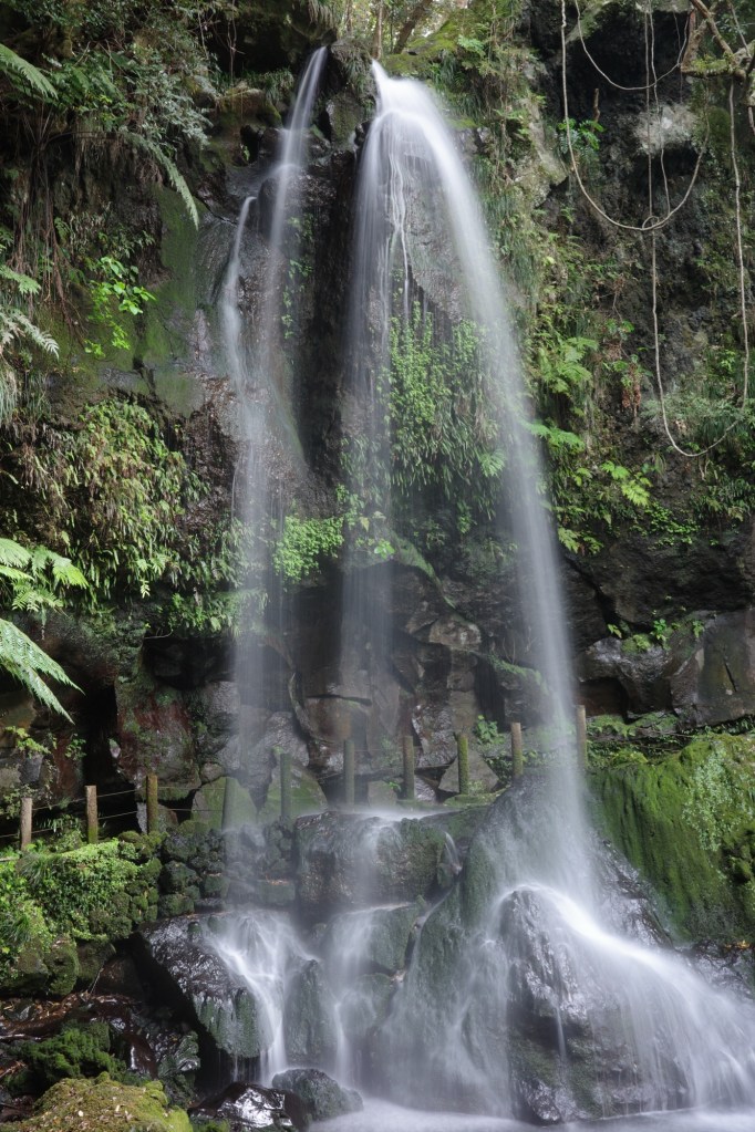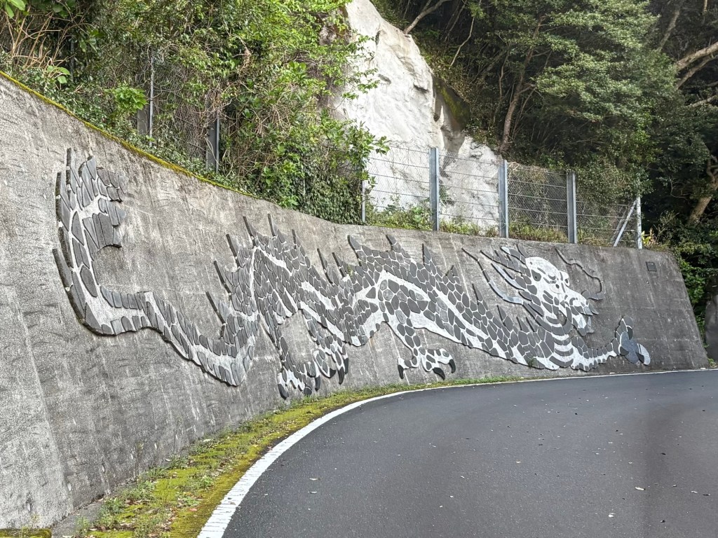 Next we drove up a dramatic bridge towards a tunnel, but stopped just before to take in the view. That’s little Hachijo Kojima (little island) out there.