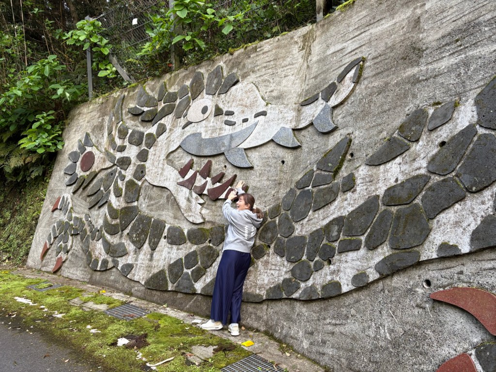 The roads were often lined with stone walls made from large watermelon shaped cobbles gathered on the shore. We drove for probably 20 minutes without passing another car. We went past a couple of dragon murals to another view. They must clean the moss off of the dragons, because it grows on everything else.