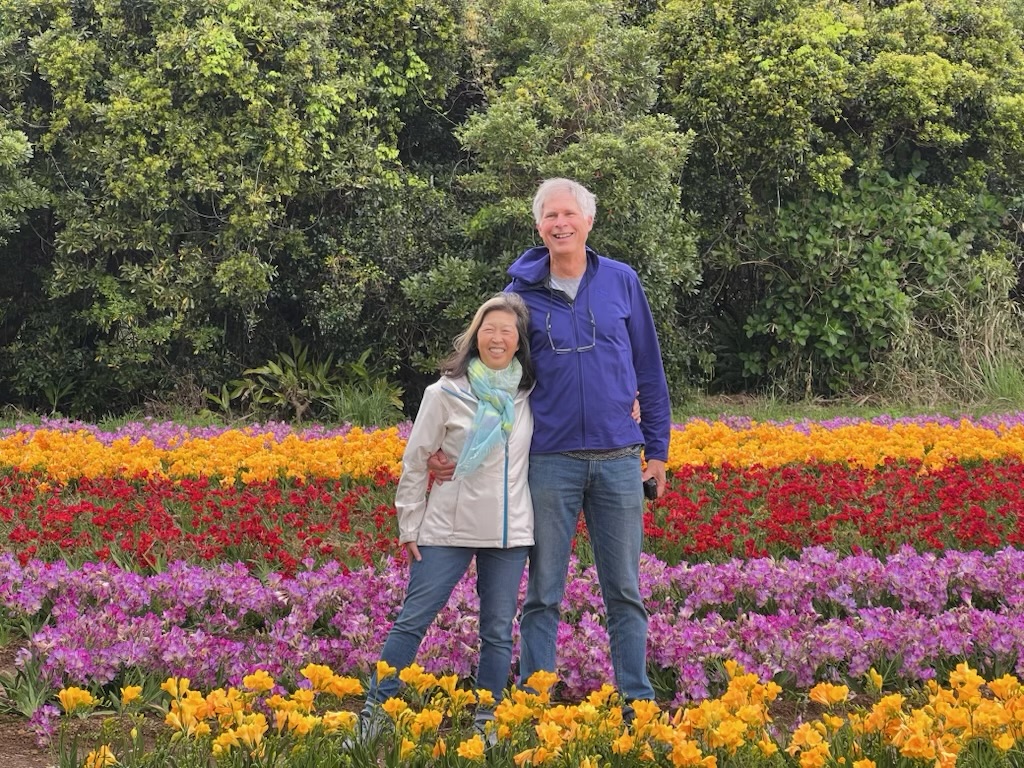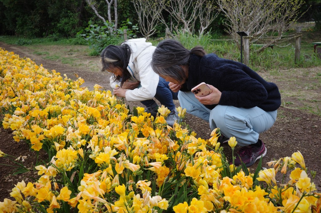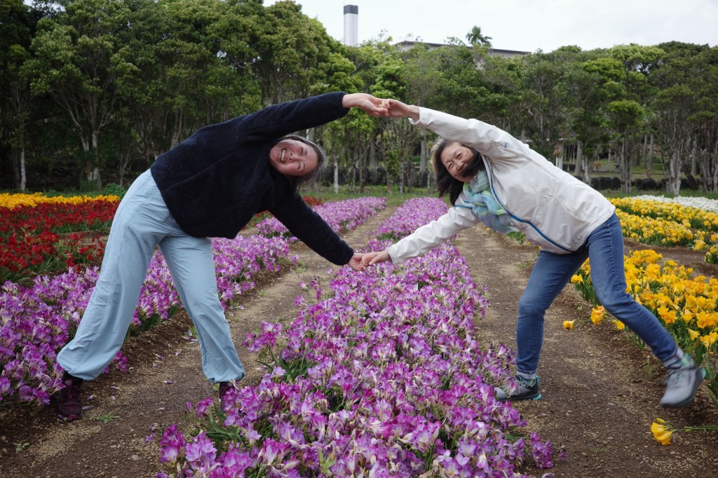 Yuko loaded us into a rental van and started us on a tour of the island. First were the flower fields next door to Y-Lulu. Freesia! They smelled amazing, even in the wind.