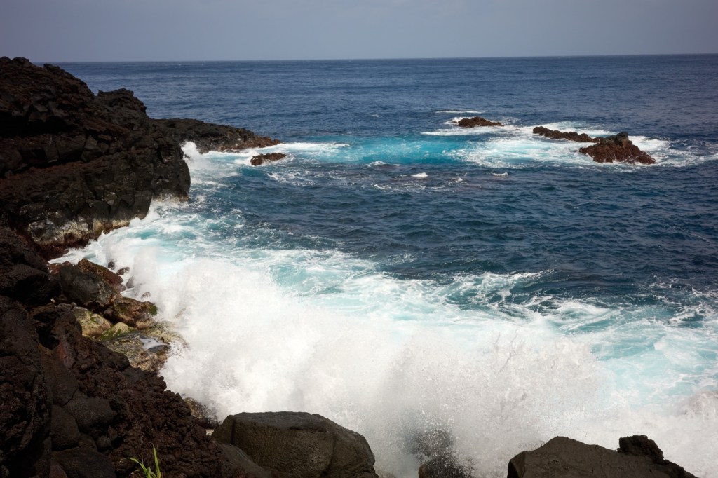 Yuko drove us down another lonely road next to the ocean on the windward side, where the waves were really pounding and throwing up spray onto the road. There was a café there run by a couple, she was Japanese and he was a tall Italian. He was the cook and the pasta was great. I got the shiitake carbonara.