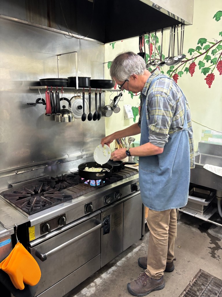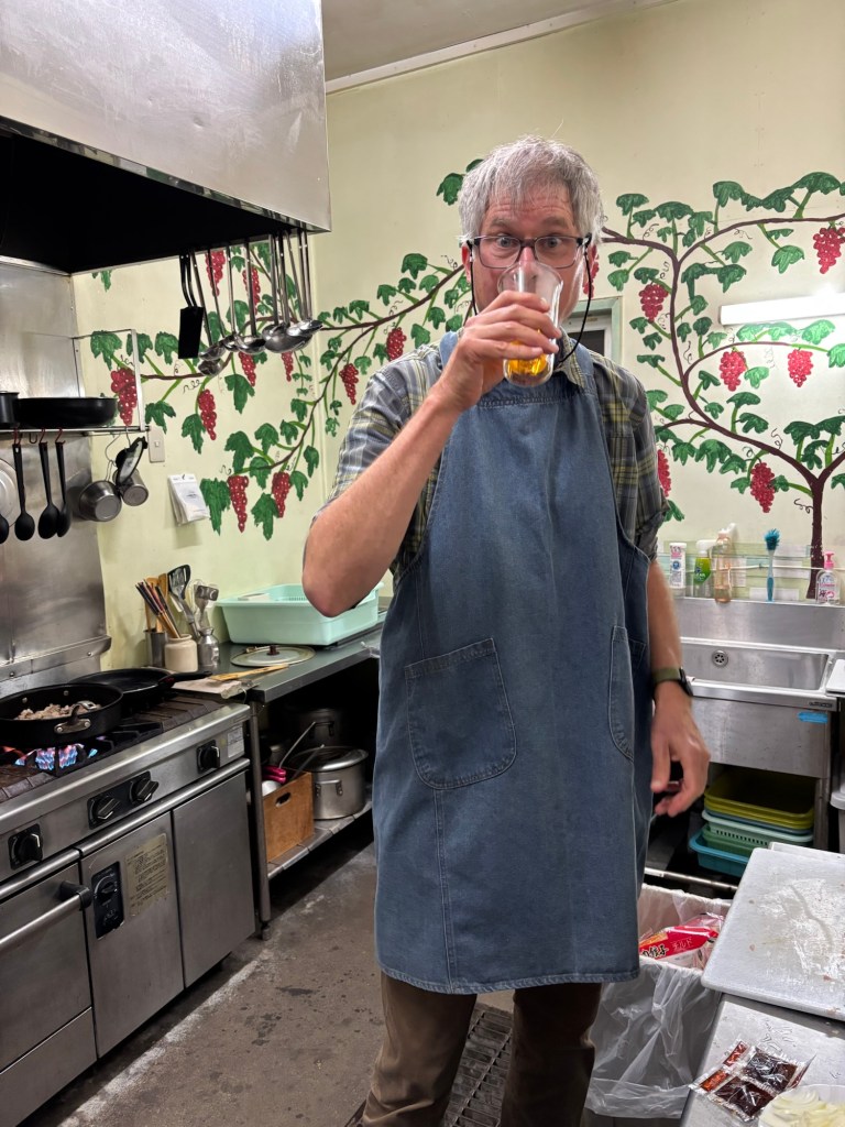 We hauled the groceries and goodies back to the camp kitchen and I got to work. Strange kitchen, new ingredients, stove and oven labels in Japanese: I was maximally winging it.