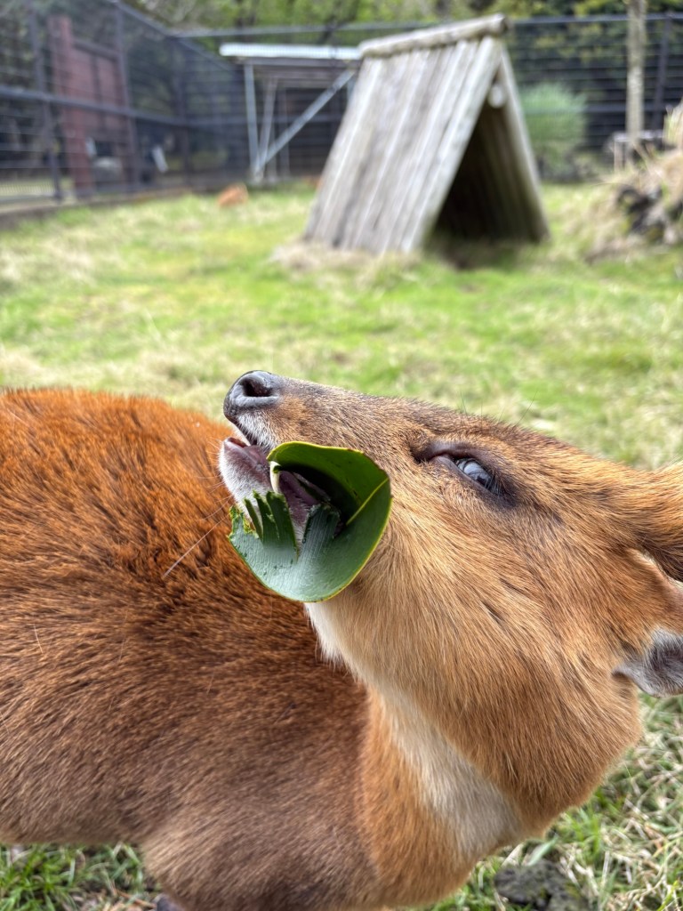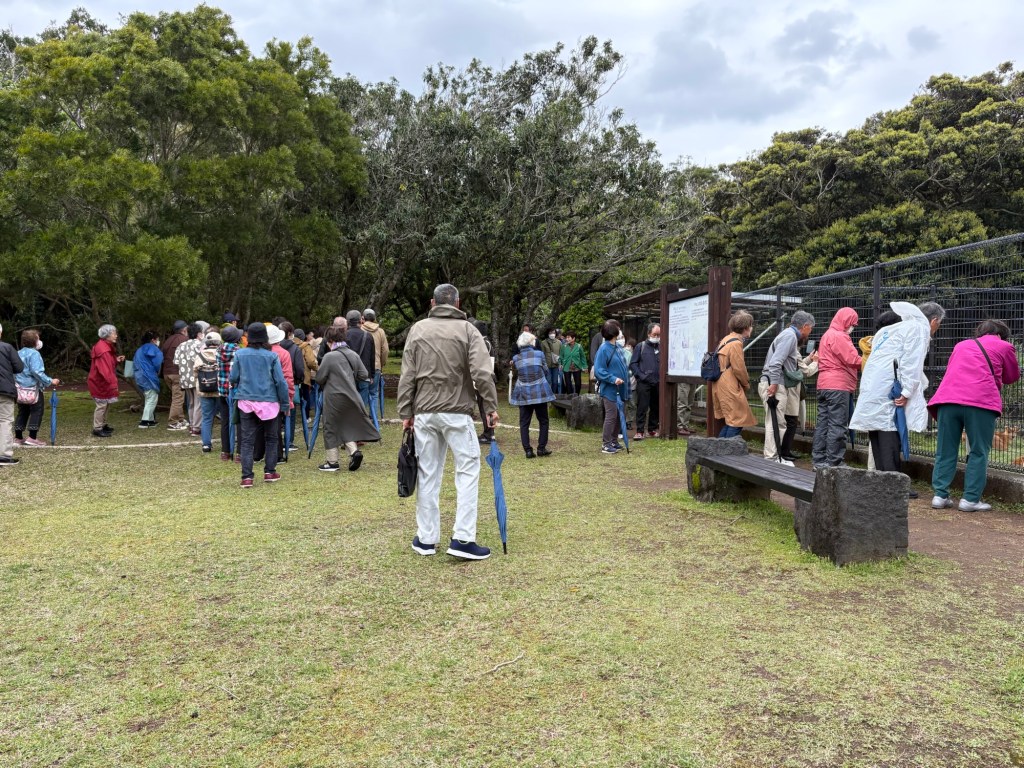 While we were watching the kyon, and trying various leaves out on them, a crowd walked out from the trees. They all crowded around the kyon enclosure for a few minutes and then they wandered off again. It was a little strange, most other venues we had to ourselves or a few others.