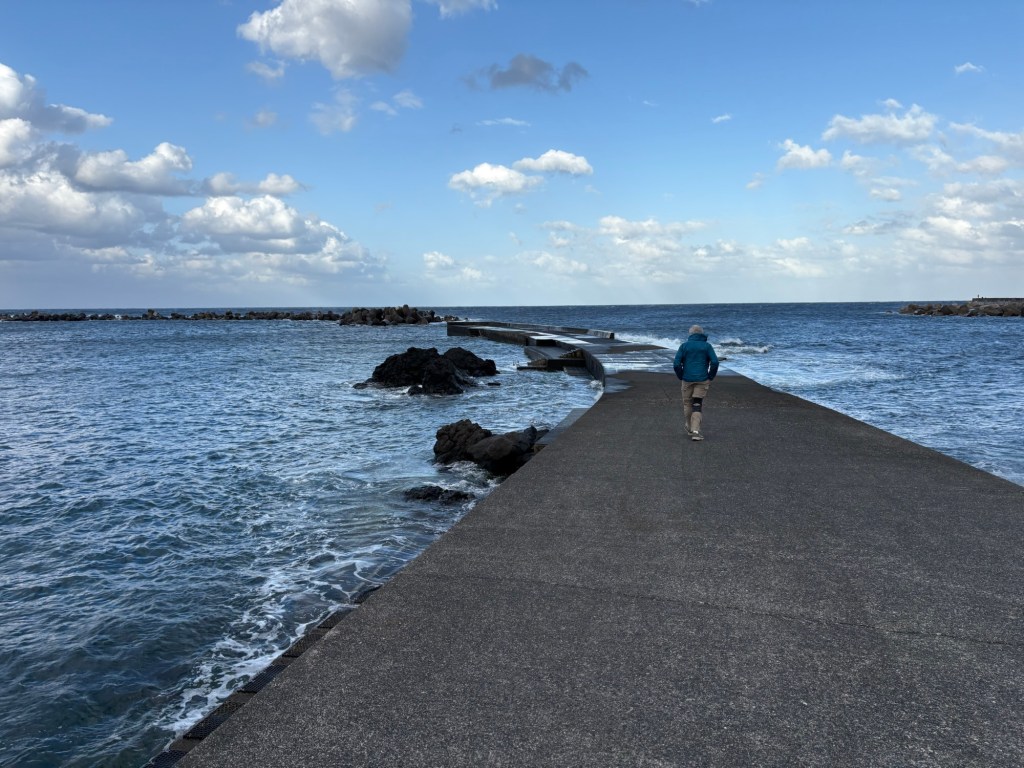 Michele and Ryoko had a taiko lesson scheduled for 2 pm at the lodge, so we all had the morning free. Yuko loaded us back into the van and we went down lonely streets and an unpaved lane to arrive unexpectedly at a lovely café with a great view. Hachijo seems to have its treasures tucked away.
