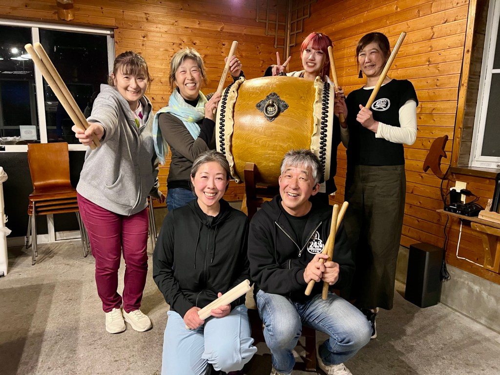 After dinner Yoshio, Kaori and daughter played for us on the lodge taiko drum.